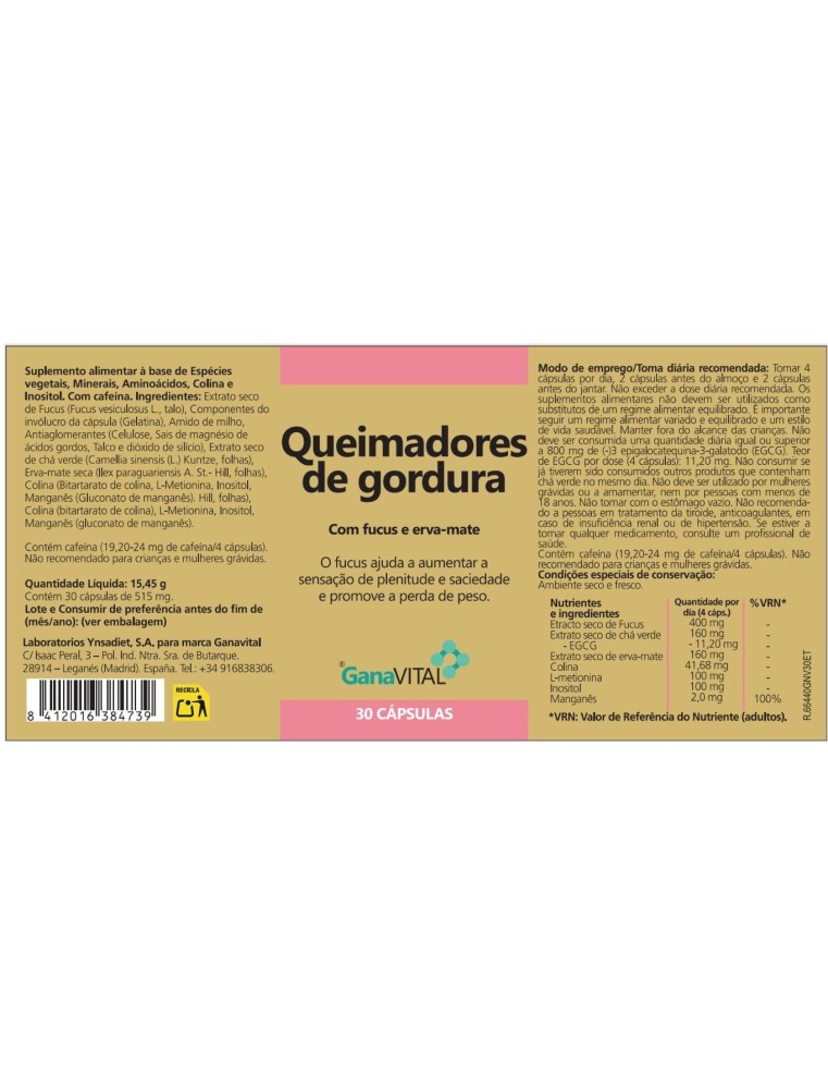 Suplemento alimentar à base de espécies vegetais, minerais, aminoácidos, colina e inositol. Com cafeína.