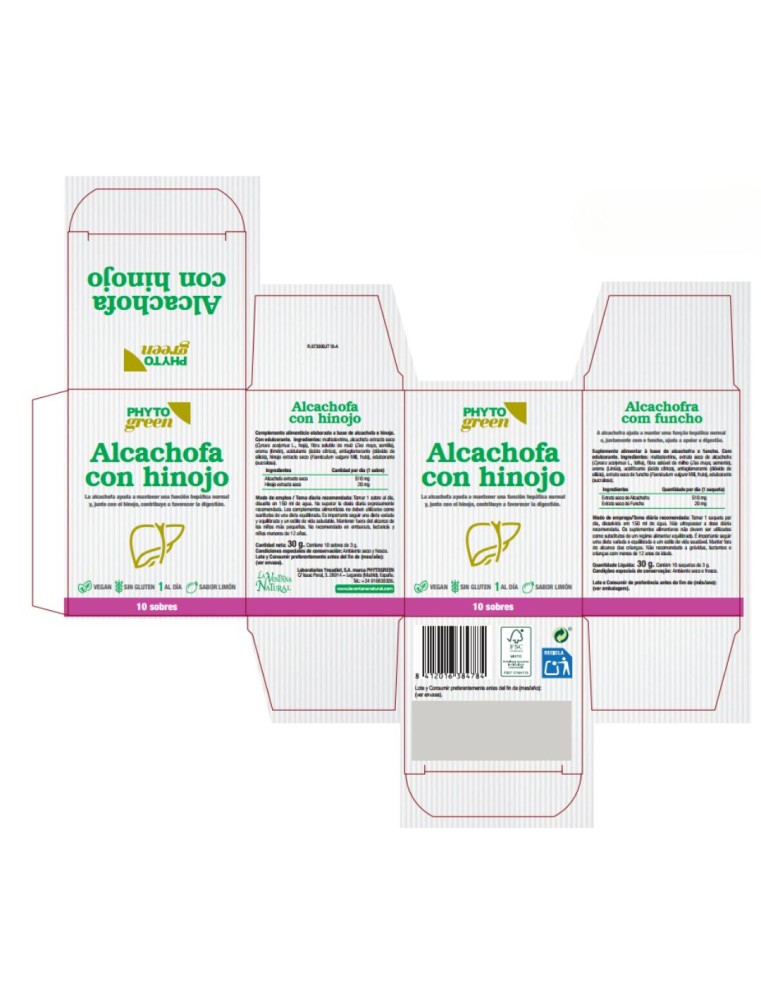Suplemento alimentar à base de alcachofra e funcho. Com edulcorante.