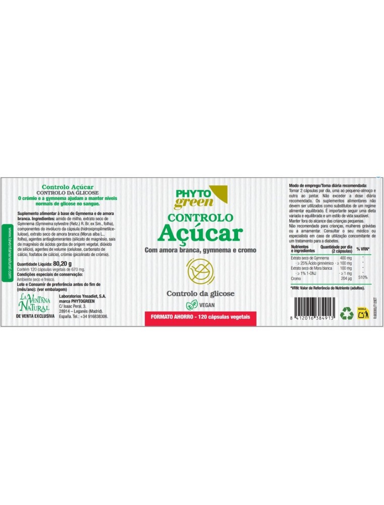 Amido de milho, extrato seco de gymnema (Gymnema sylvestre (Retz.) R. Br. ex Sm., folha), componentes do invólucro da cápsula (hidroxipropilmetilcelulose), extrato seco de amoreira branca (Morus alba L., folha), antiaglomerantes (silicato de magnésio, sais de magnésio de ácidos gordos de origem vegetal, dióxido de silício), agentes de volume (celulose, carbonato de cálcio, fosfatos de cálcio), crómio (picolinato de crómio).