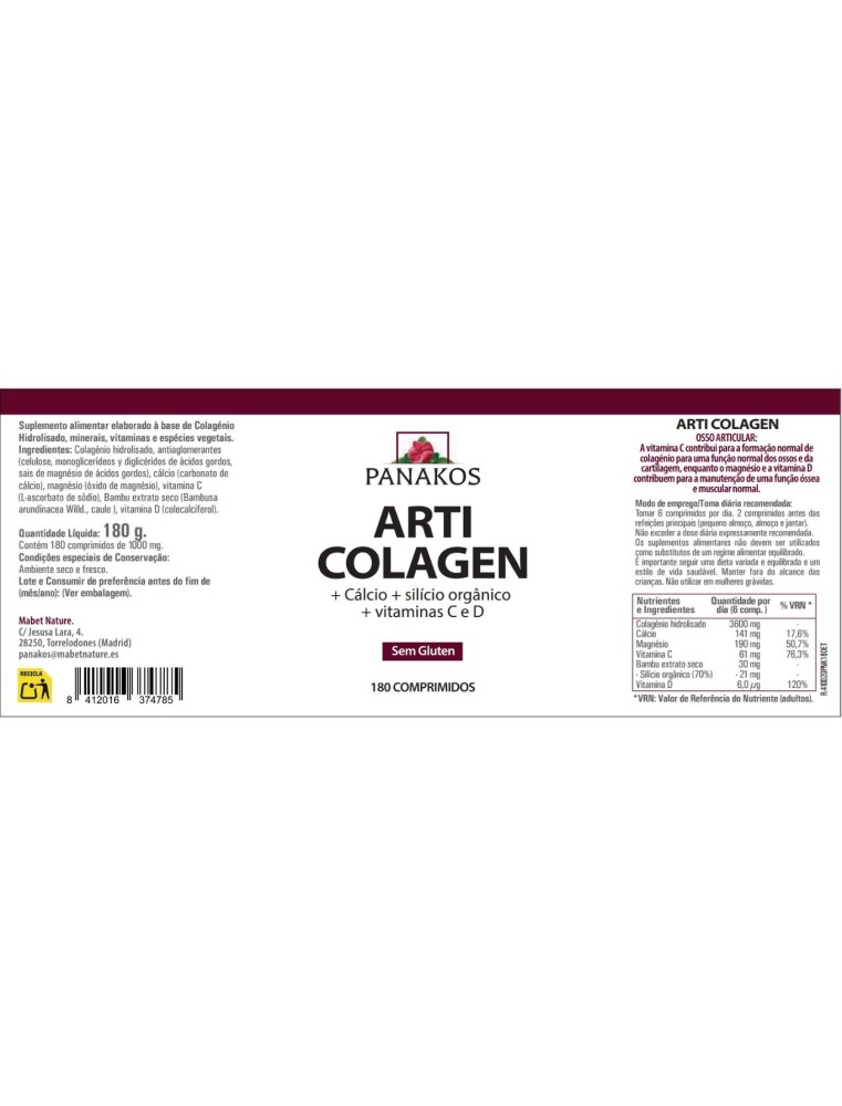 Suplemento alimentar à base de colagénio hidrolisado, minerais, vitaminas e espécies vegetais.