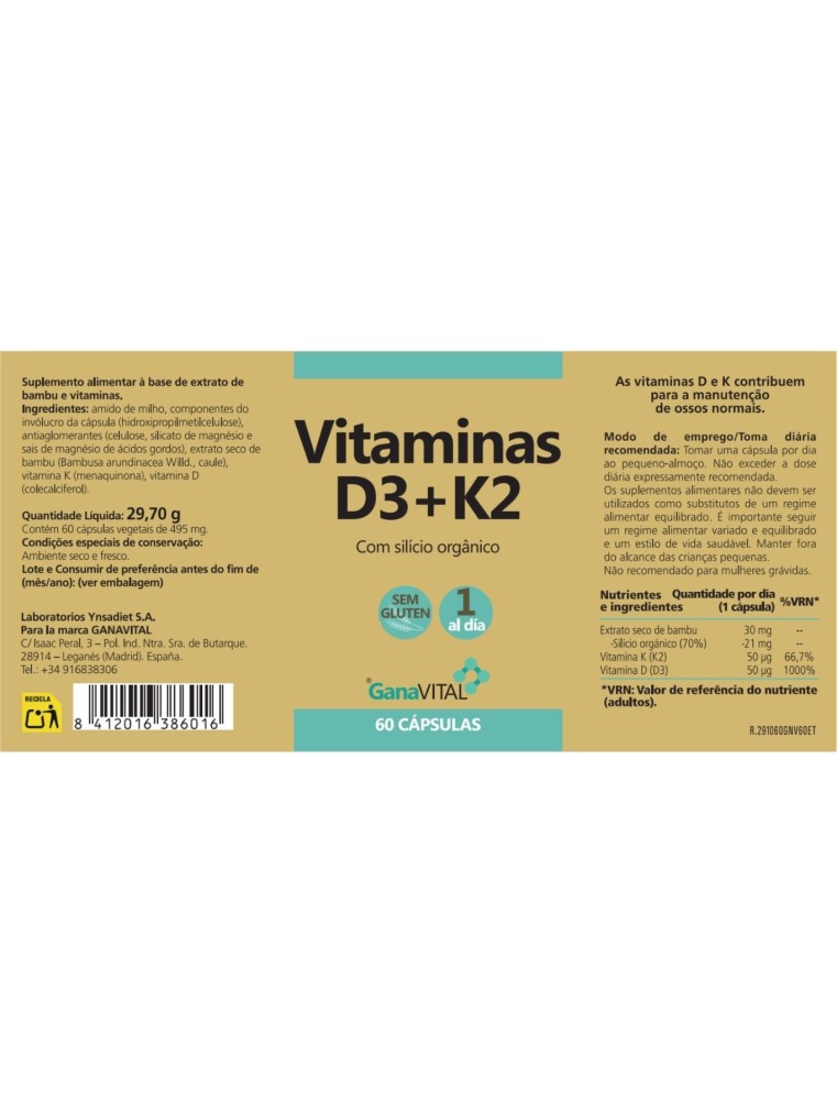 As vitaminas D e K contribuem para a manutenção de ossos normais.