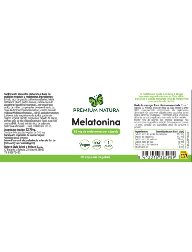 | Melatonina pó | 1,8 mg |