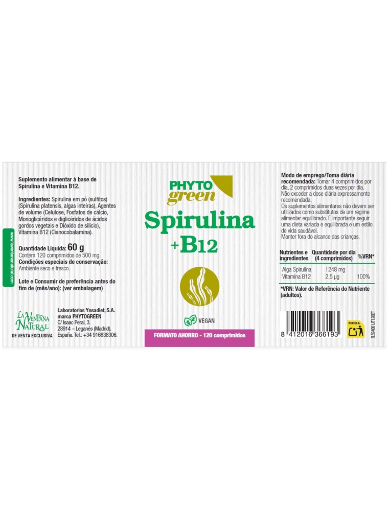 SPIRULINA + VITAMINA B12 120 COMP. PHYTOGREEN