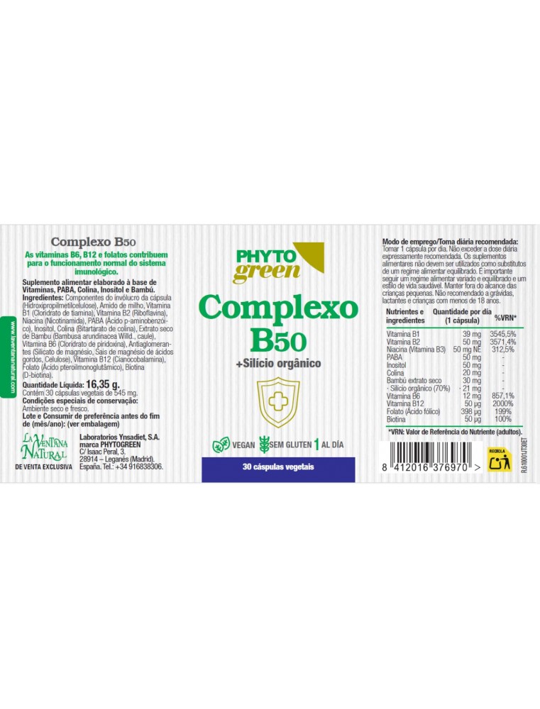 COMPLEXO B50 + SILICIO ORGANICO 30 CAPS. PHYTOGREEN