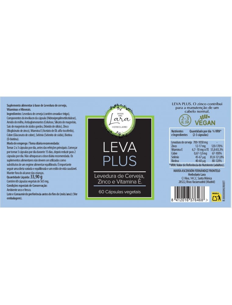 Suplemento alimentar à base de levedura de cerveja, vitaminas e minerais.