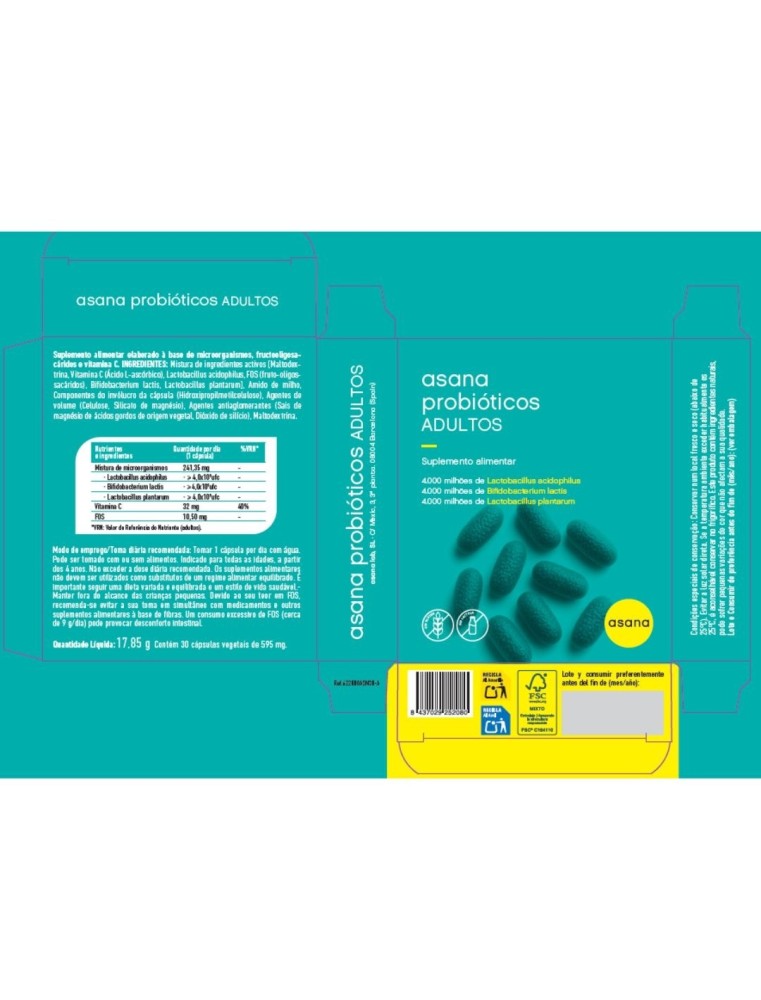 Suplemento alimentar à base de microrganismos, fruto-oligossacáridos e vitamina C.
